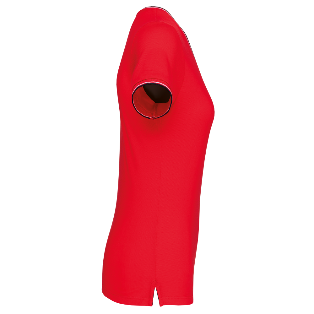 100% gekamd katoen piqué (Oxford Grey: 90% katoen / 10% viscose). Ribboord met contrasterende strepen aan de kraag en mouwuiteinden. Contrasterende zijsplitten en nektape in de kraag. Afwerking met dubbel stiksel onderaan.