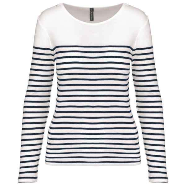 K386 - Gestreept dames-t-shirt lange mouwen