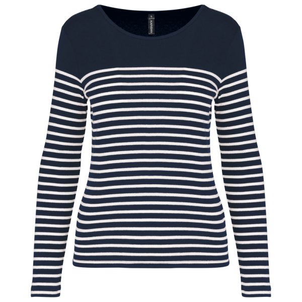 K386 - Gestreept dames-t-shirt lange mouwen