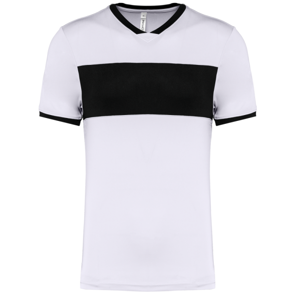 100% interlockpolyester. V-hals met nektape. Ingezette mouwen. Contrasterende borstinzetstukken,...meer