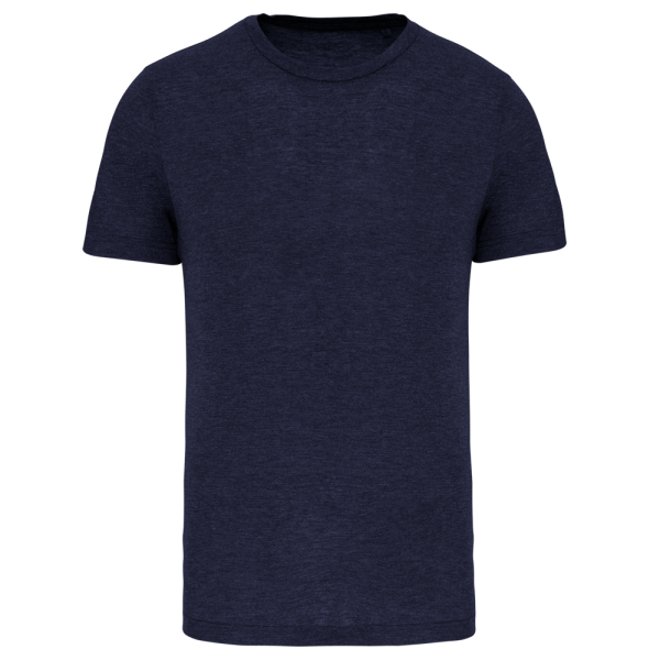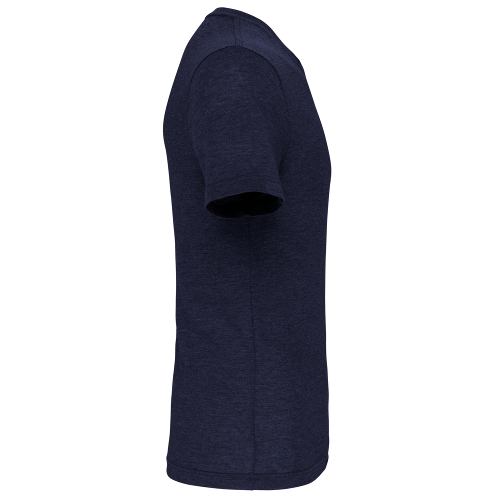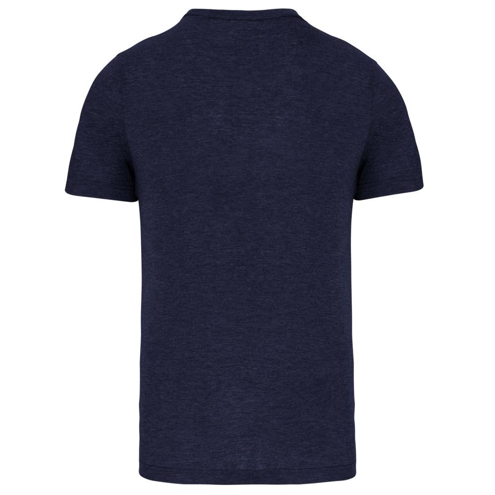 50% polyester / 25% katoen / 25% viscose. Jerseystof. Toon-op-toon nektape. Dubbel stiksel aan mouwuiteinden en onderkant. Geen merklabel in de kraag, maar enkel een maatlabel voor eenvoudige personalisatie.