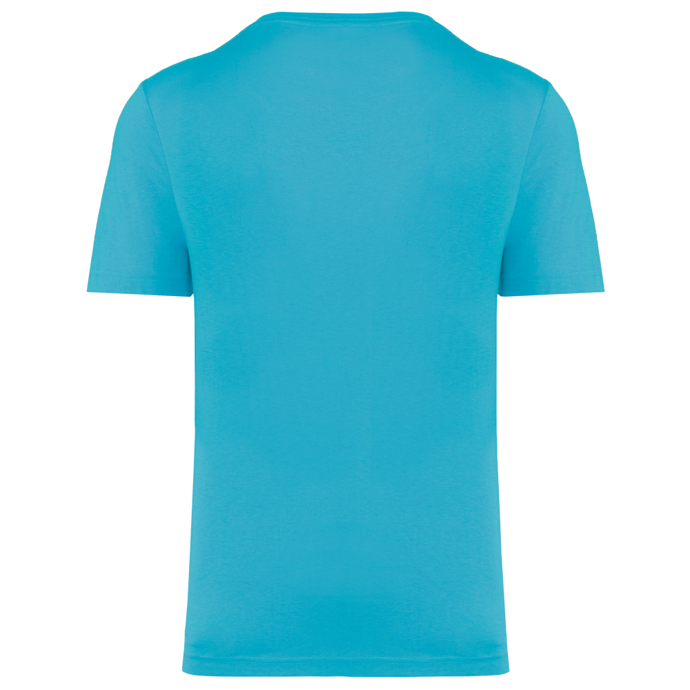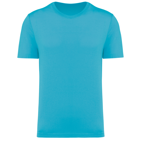 50% polyester / 25% katoen / 25% viscose. Jerseystof. Toon-op-toon nektape. Dubbel stiksel aan mouwuiteinden en onderkant. Geen merklabel in de kraag, maar enkel een maatlabel voor eenvoudige personalisatie.