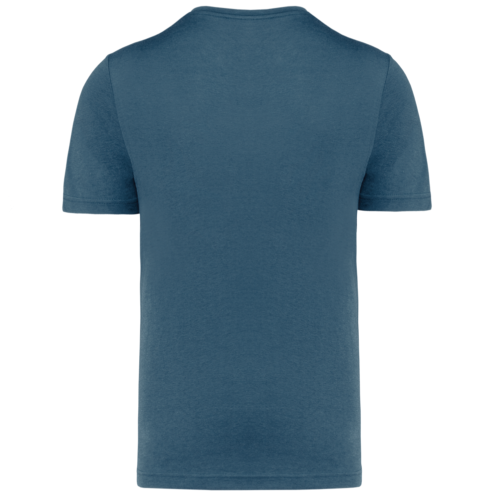 50% polyester / 25% katoen / 25% viscose. Jerseystof. Toon-op-toon nektape. Dubbel stiksel aan mouwuiteinden en onderkant. Geen merklabel in de kraag, maar enkel een maatlabel voor eenvoudige personalisatie.