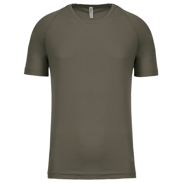 100% polyester. Sneldrogende lichte stof. Ronde hals. Nektape. Raglan mouwen met overstiksels. Afwerking met dubbele stiksels aan de mouwuiteinden en onderkant.