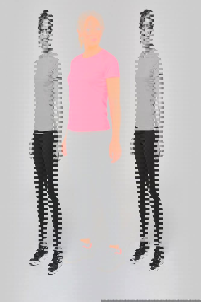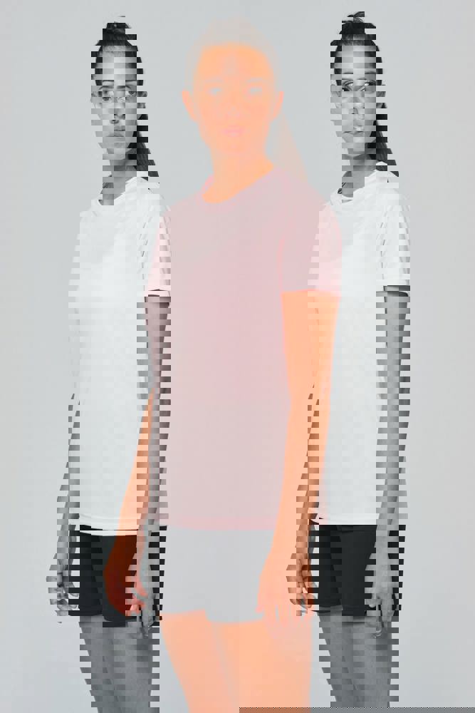 100% polyester. Sneldrogende lichte stof. Ronde hals. Nektape. Raglan mouwen met overstiksels....meer
