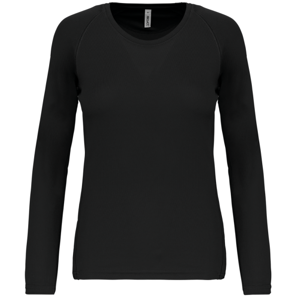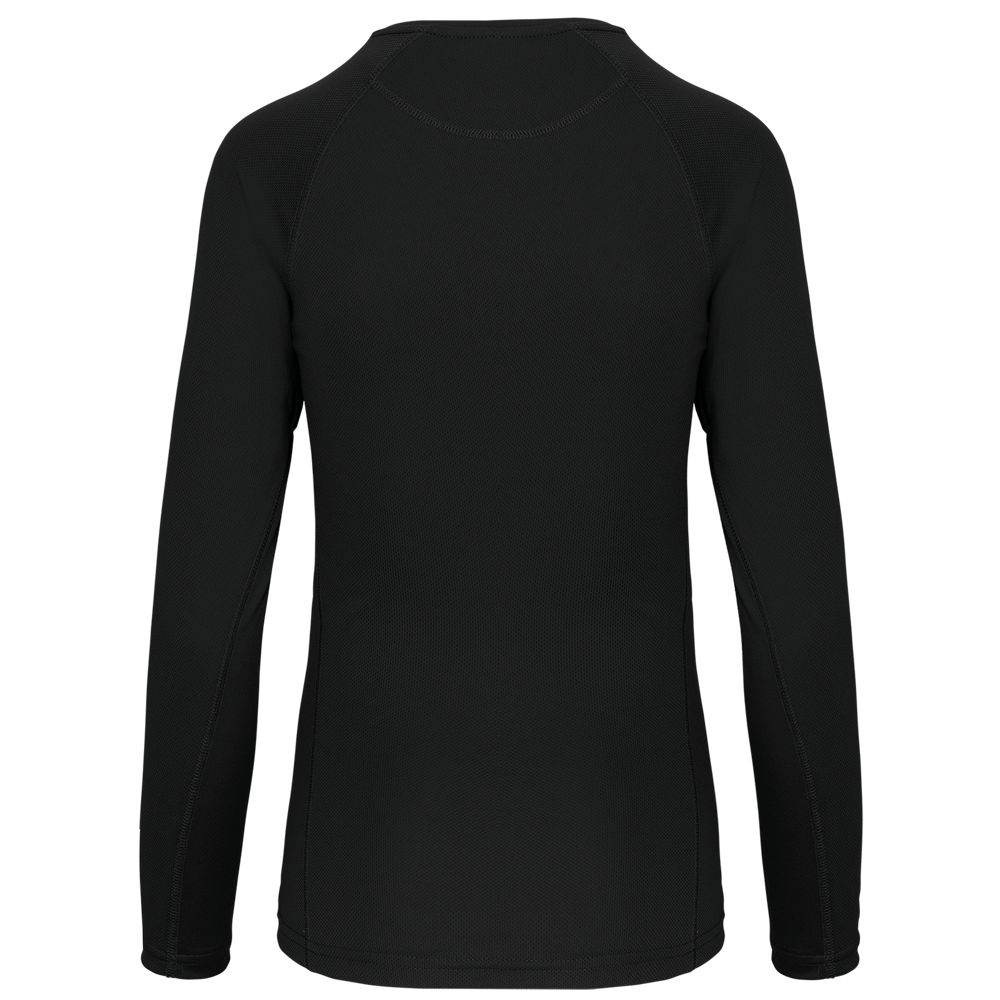 100% polyester. Sneldrogende lichte stof. Ronde hals. Nektape. Afwerking met dubbele stiksels aan de mouwuiteinden en onderkant.