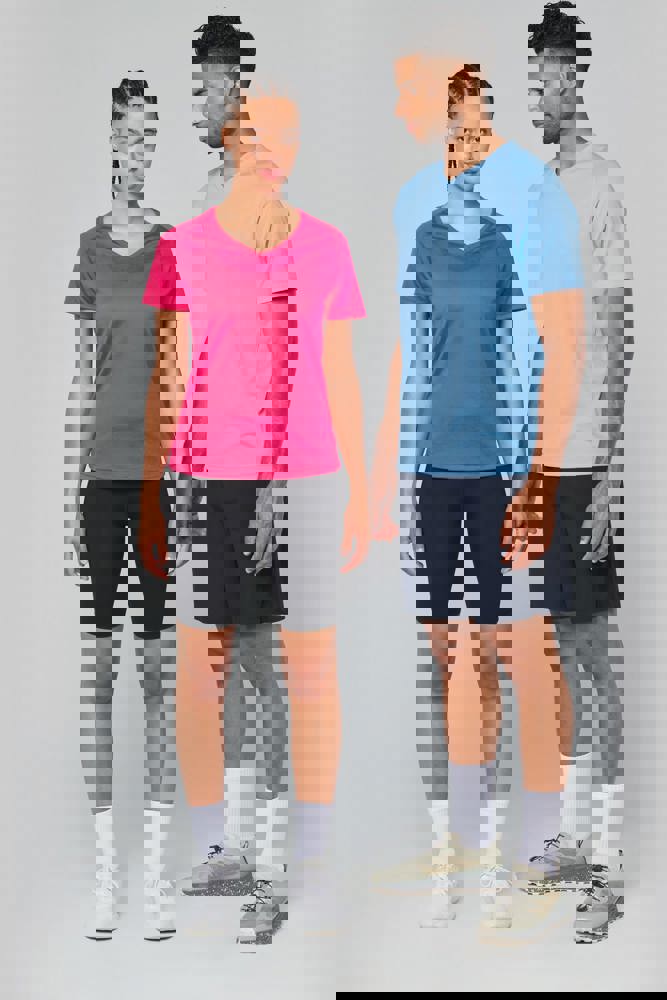 100% polyester. Sneldrogende stof. V-hals met nektape. Raglanmouwen met overlocksteek. Dubbel...meer