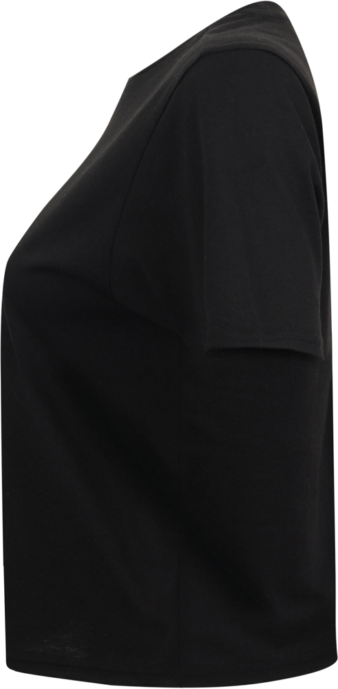 60% katoen / 40% polyester tricot. Navel t-shirt, met oversized, boxy pasvorm. Geribde hals in stretchstof. Dubbelgestikt. Verwijderbaar label.