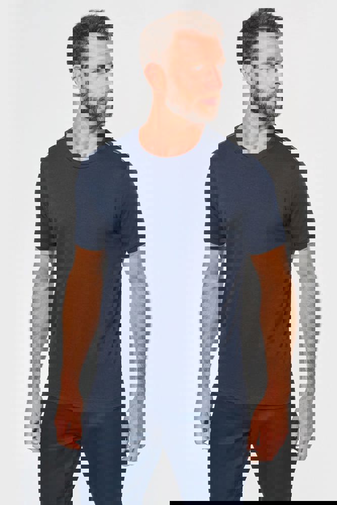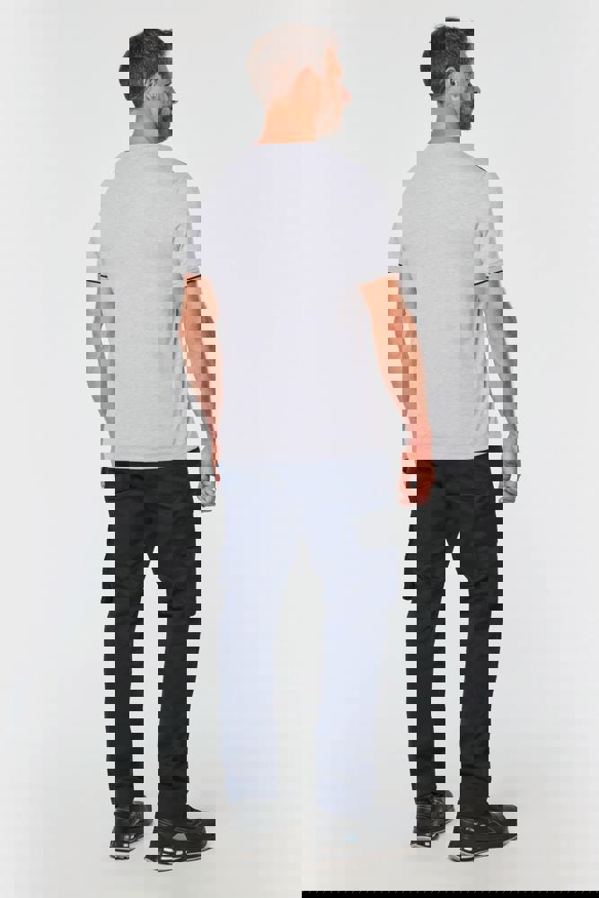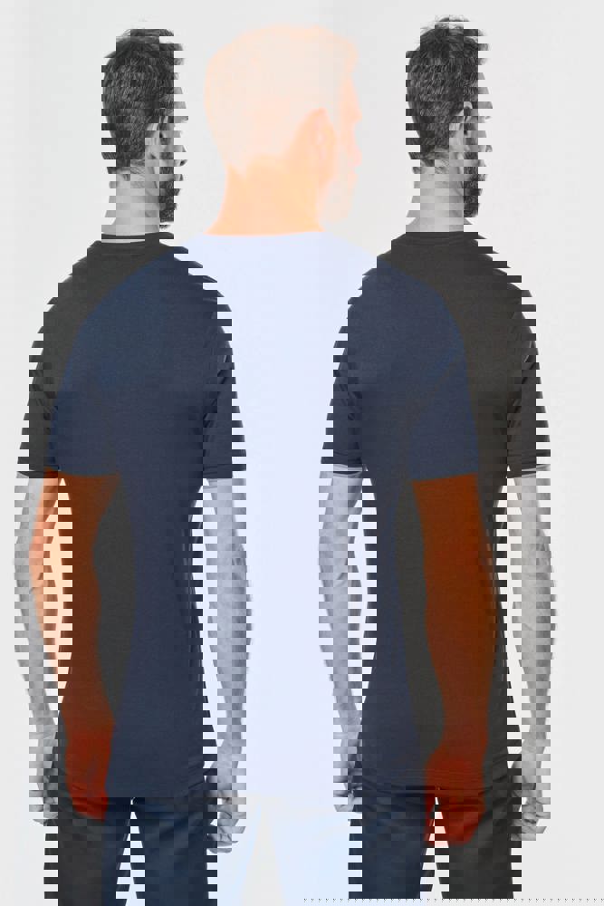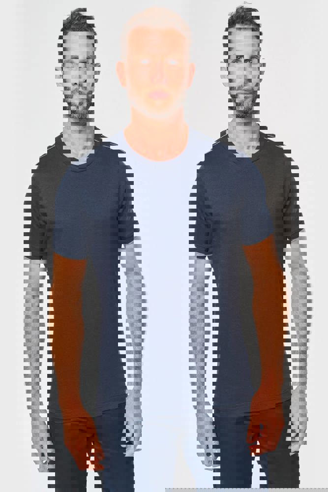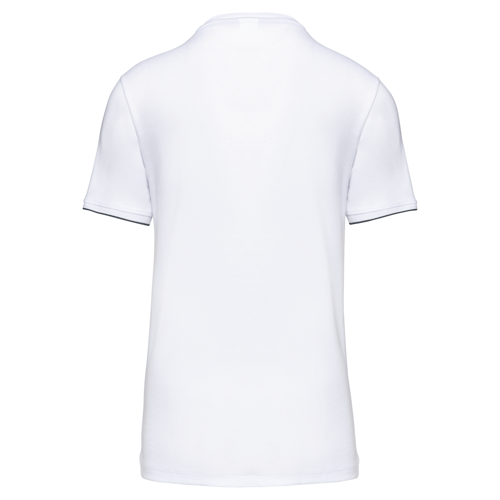 65% polyester / 35% katoen. Gekamd katoen jerseystof. Wasbaar op 60 °C. Anti-pluisbehandeling. Ronde hals met elasthan. Contrasterende bies aan binnenkant kraag en schouders. Mouwuiteinden in ribboord met contrasterend biesje. Afwerking met dubbel stiksel onderaan. Ideaal voor dagelijks gebruik.