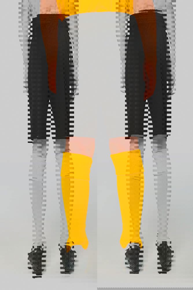 95% polyester / 3 %elastodieen / 2% elasthan. Elastische omtrek aan de bovenkant. Elastische anti-rotatie omtrek aan de onderkant. Elastische anti-slip band aan de enkel. Badstof aan de binnenkant.