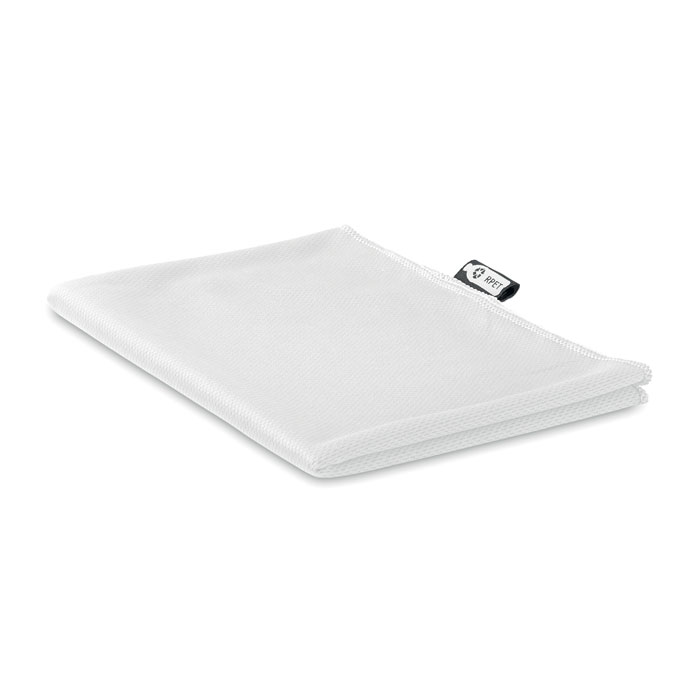 RPET sporthanddoek met hoog vochtabsorberend vermogen in een RPET non woven mesh tas.meer