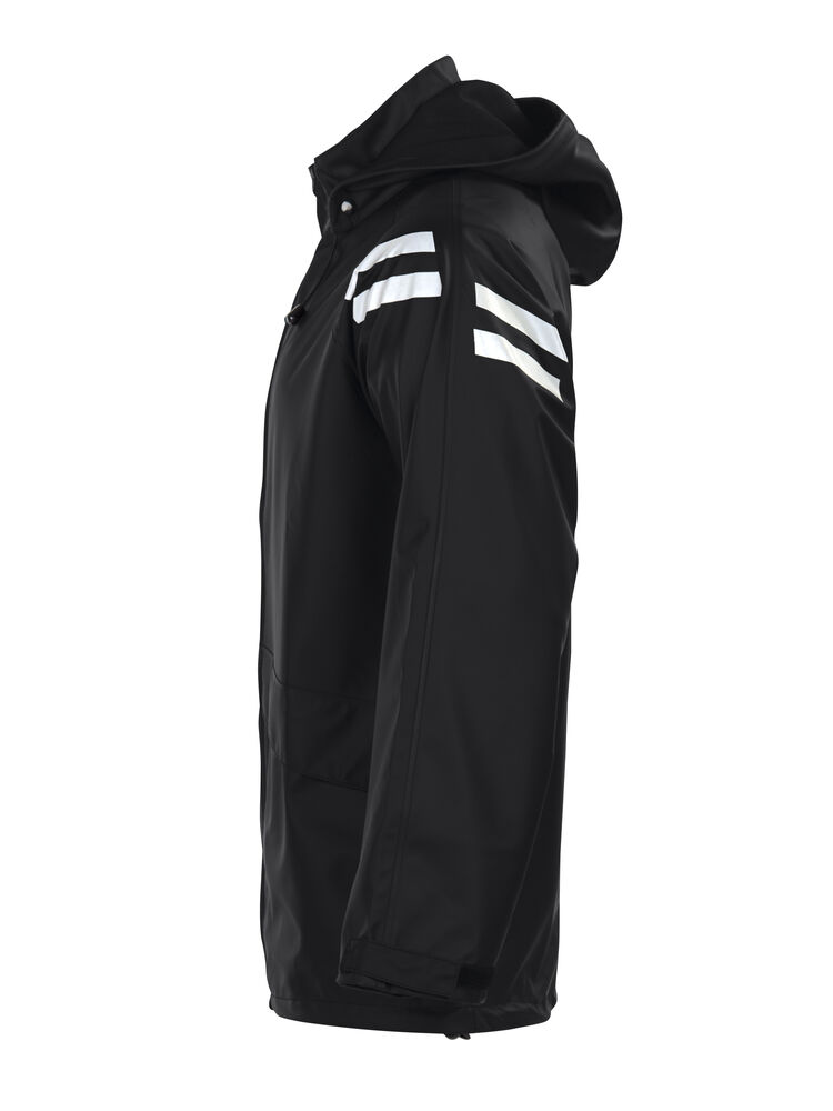 Technisch regenpak gemaakt van scheurbestendig, hoogwaardig en flexibel materiaal ook bij koud weer, voor optimale vrijheid van bewegen. Het regenpak is hoogwaardig afgewerkt met gestikte en gelaste naden, reflecterende details, afneembare capuchon met drukknopen en klittenband bij de manchetten. De jas is voorzien van voorzakken met klep en verstelbaar koord bij de taille. De broek is voorzien van zakken met klep en elastische band bij de taille.