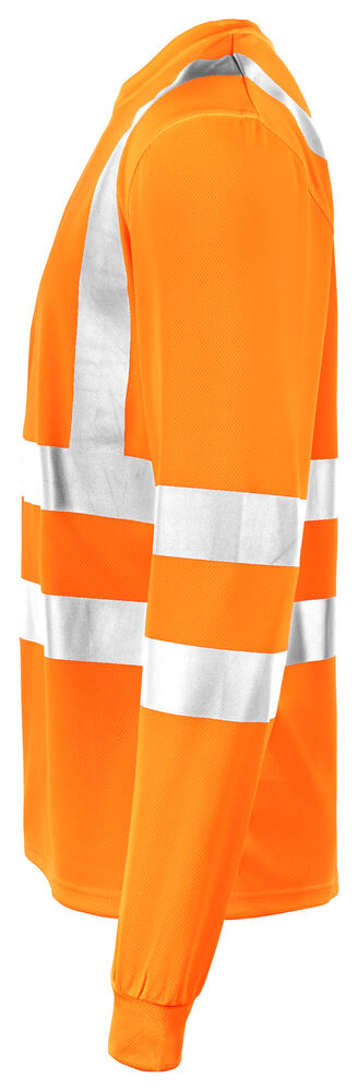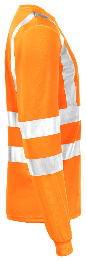 Comfortabel Hi-Vis T-shirt met lange mouwen gemaakt van polyester met een vochtafvoerende werking voor een aangenaam droog gevoel gedurende de dag. Het T-shirt is afgewerkt met naadloze reflecterende strepen met onderbreking op de zijnaden voor optimale bewegingsvrijheid. De reflecterende strepen op de schouders zorgen voor extra zichtbaarheid van bovenaf.